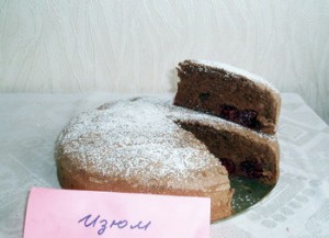 еще одна конкурсная работа этой замечательной кулинарки - белковый бисквит с вишнями: "Вишни еще не все были использованы. В холодильнике я обнаружила белки. Я решила попробовать испечь белковый бисквит с вишнями. Получилось совсем неплохо."