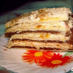 Именно такой торт является визитной карточкой Луцкой кондитерской фабрики. Я любила его лет 20-ть тому назад, когда мальчишки важно приглашали меня в кофейню на стакан молочного коктейля... Здорово было!