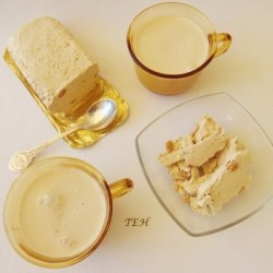 Сегодня мне пришла в голову мысль о компромиссе. Что, если использовать халву в приготовлении десертов? Например, испечь пирог с халвой, сообразить какой-нибудь манник. Погуглив, я нашла необычный рецепт напитка на основе кофе и халвы, а к нему - легкое, необычное парфе.