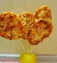 Основное блюдо - чупа-чупсы. Да-да, именно они! Вернее, это будут миниатюрные пиццы в виде столь любимых всеми конфет. Начинка может быть любой - на ваш вкус. А как приготовить пиццу такой необычной формы вы узнаете вот тут.