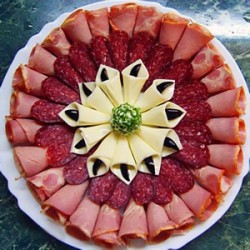 Ну, с бутербродами все ясно - накромсает. Торт купит. "Оливье" сделать успеет. Что еще? Посоветую ей купить много-много нарезанного мяса и сыра и сделать парочку мясных и сырных тарелок. Главное - красиво украсить!