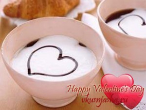 Кофе, шоколад и любимый человек. Что еще надо для счастья? Предлагаю встретить начало дня Святого Валентина с двумя чашками вот такого красивого, бодрящего, сердечного напитка. Идея найдена на сайте Vkusnjasha.ru.