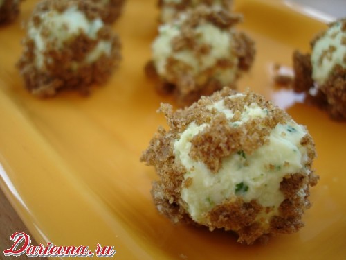 Закуску по достоинству оценил мой муж. И пришедшие к нему на пиво друзья. Засела их веселая компания в беседке и потребовала чего-то вкусного. А у меня, как назло (ну, правда!), просто пустой холодильник! В углу вот кусочек брынзы завалялся, но как-то только брынзу порезать и все - даже и говорить несерьезно. Экспромтом родился рецепт. Получилось очень вкусно, мужчины оценили и обещали прийти через неделю, за следующей порцией шариков. Идею я потом отшлифовала, довела до совершенства и делюсь с вами результатом. Не скажу, что в конечном счете получается быстро, но точно нетрудоемко!
