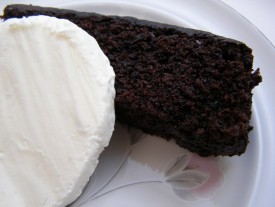 Моя вечнохудеющая подруга (весящая, между прочим, не больше 55 кг - это так, к слову поворчать) считает, что основное достоинство этого десерта - в его низкой калорийности (ну, при условии исключения мороженого). Другие знакомые регулярно звонят во время поста и просят напомнить "тот чудный тортик, который можно". Я же просто честно признаюсь: такого нежного шоколадного вкуса ни в каком другом десерта нет. Мне кажется, что сочетание шоколадного теста и ванильного пломбира - самом совершенство, по этому поводу я готова поглощать его непрерывно.