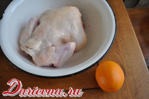 Курицу моем, удаляем лишние шкурки-остатки перьев.