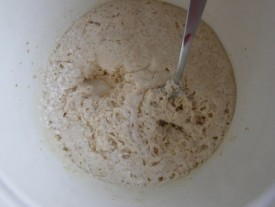 Когда вы увидите, что опара подошла и радует глаз, очистите бананы и измельчите их блендером, миксером либо просто вилкой. Смешайте пюре с опарой, добавьте сахар и соль, яйца, растопленное масло, а потом влейте теплое молоко. Кстати, последнее при необходимости легко заменяется на сыворотку.