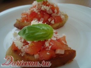 Брускетта... За красивым названием скрывается простой итальянский бутерброд. Готовится он очень легко, но зато может вас здорово выручить в случае неожиданных гостей. Весь секрет - в хлебе, который для брускетты предварительно обжаривается на растительном масле и натирается чесноком. Еще пара минут для остальных ингредиентов - и у вас готова великолепная закуска!