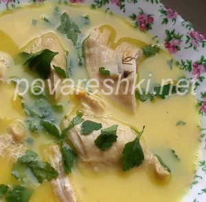 Тонкой струйкой влейте желтки в бульон, проследите, чтобы он не кипел, иначе желтки свернутся!