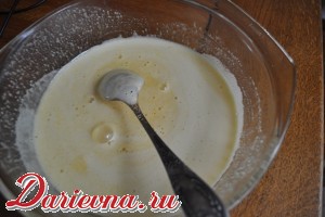 Сахар растираем с яйцами, заливаем кипяченым остуженным молоком. Хорошо размешиваем.