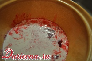 Малиновое пюре (чуть припускаю ягоду на огне, перетираю через сито) смешиваем со сливками.