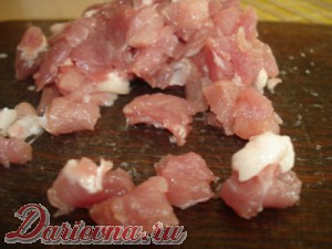 Мясо мелко порезать кубиками со стороной 5-7 мм.
