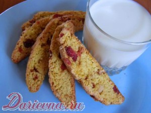 В Сети можно найти огромное множество разновидностей бискотти - и с фундуком, и с курагой, и с черносливом, и с вишнями, и с миндалем, и с изюмом, и без всего этого, но с чем-то другим, непременно особенным. Считаю, что все это... ерунда. Бискотти - это не наполнение, а способ приготовления сухарей-печенья, это базовое тесто, а то, что вы туда добавите на название никак не влияет. Впрочем, это мое мнение, я вам его демонстрирую, а вы решайте сами.