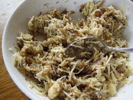 Сыр натерли, смешали с грибной массой.