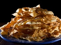 А не нажарить ли мне хвороста, подумала я сегодня, забыв на время о полезности еды и думая только о ее вкусности. Подумано - сделано! В глубокой неприглядной эмалированной миске с голубыми цветочками (кажется, мама покупала ее еще во времена Советского Союза) горой хрустящего печенья лежит хворост. Лежит и манит, манит, манит!