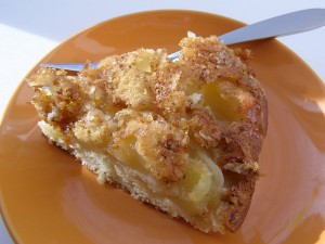 Этот штрейзель лучше выкладывать поверх теста и яблок.