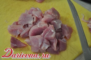 Картошку почистить, помыть, нарезать кубиками, сложить в горшок.