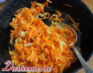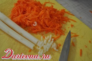 Морковь натираем на средней терке, сельдерей нарезаем полумесяцами.