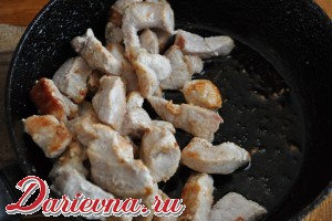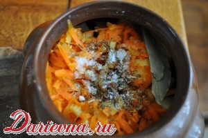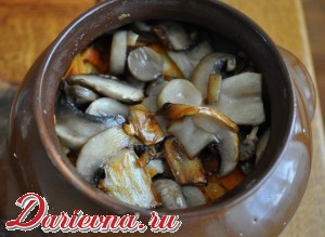 Грибы нарезать ломтиками, обжарить. В горшок.