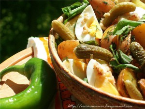 Легкий, но сытный. Простой, но эффектный. Витаминный и яркий. По-моему, просто находка, а не салат. Случайно набрела на рецепт на сайте Кrutkovi.3bb.ru, сегодня буду готовить.