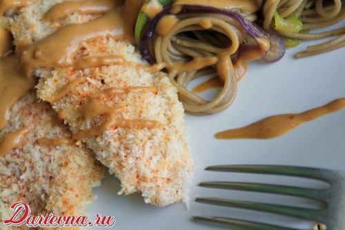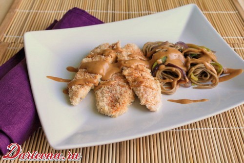 Решив пофантазировать на тему тайской кухни, у меня родился рецепт курицы в кокосовой панировке. Получилось необычно и очень вкусно. Арахисовый соус, чуть сладковатый и пикантный, прекрасно дополняет лапшу соба. Если у вас проснулся интерес к тайской кухне, то это хороший вариант, чтобы внести в свое меню немного экзотики.
