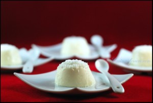 Рецепт с сайта Карина-форум.ру: "Это желе напоминает по консистнеции Panna cotta. Разница состоит в том, что готовится оно не из сливок, а из кокосового молока. Количество желатина зависит от желаемой консистенции желе. Я предпочитаю не очень крепкое, поэтому кладу чуть меньше желатина. Я очень люблю кокос во всех проявлениях, за исключением кокосового молока. Поэтому в этом рецепте всегда заменяю его обычным молоком или нежирными сливками и добавляю много кокосовой стружки. "