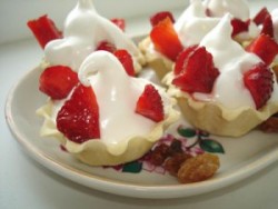 Сезон клубники открыт, а впереди еще - море малины, черешни, вишен, земляники, черники и кучи других ягод. Пожалуй, это то немного, что примиряет меня с летом,, поэтому надо пользоваться ситуацией на полную силу. Торты, муссы, пирожные, пироги, желе, панна котты - выбор десертов, в состав которых входят ягоды, неимоверно широк. Кстати, о пирожных. Корзинки из песочного теста, в которые можно уложить ягодное ассорти - по-моему, это прекрасный способ использовать возможности летнего предложения. Песочное тесто, ведро ягод - тут вопросов вроде бы не возникает, но вот что добавить между ними? Можно выбрать белковый крем - легко, воздушно. Или приготовить заварной - нежно, мягко. Может, потратить немного больше времени и сделать лимонный курд? Будет ярко и ароматно. Еще один вариант - творожный крем: полезно и бархатно.