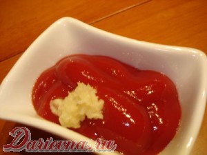 Не забываем про соус. Самый простой вариант: смешиваем ваш любимый кетчуп и чеснок.
