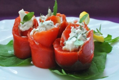 Рецепт не то чтобы очень необычный, но... есть в нем изюминка, есть! А заключается она в том, что в начинку для рулетиков из копченого лосося входит крем-чиз, зелень и... тертый хрен! Он придает блюду определенную пикантность, придавая закуске особые нотки. Спасибо сайту vkusnosti.vmama.ru за идею!
