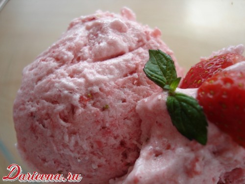 Такое вот мороженное - нежирное, неприторное, очень вкусное - можно приготовить, конечно, из любых ягод. Но клубника, мне кажется, подходит лучше всего! Все, что вам понадобится, это - белки, сахарная пудра и сама клубника, разумеется.