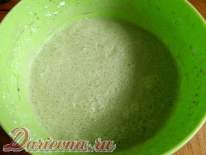 Достать из морозилки, разрезать на кусочки, взбить миксером до однорожной массы.