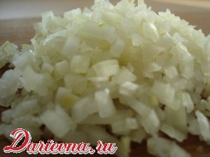 Лук нарезать мелкими кубиками.