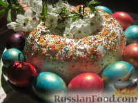 Пасхальные куличи готовятся, конечно же, на дрожжах. Но удачное дрожжевое тесто требует определенной сноровки. Если вы переживаете, что оно у вас не получится, приготовьте на Пасху вот такой бисквит. Рецепт очень простой, зато получается вкусно, быстро, красиво и очень по-праздничному! Спасибо сайту russianfood.com за идею!