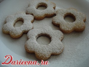Остывшие заготовки с отверстием посыпать сахарной пудрой.