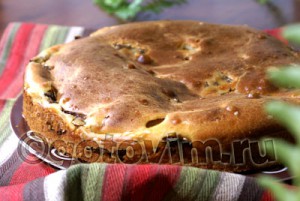 Вам обязательно понравится этот рецепт заливного пирога от «Готовим.ру» с начинкой из лисичек и картофеля. Почему заливного? Потому что тесто получается как жирная сметана – достаточно жидким, чтобы им залить начинку. Тесто готовят с добавлением творога и крахмала. Если оно получается слишком густым, добавьте немного молока.