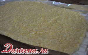 Спустя пару часов доливаем необходимую воду и варим крутую кашу. Готовую кашу выливаем на фольгу, ровняем слоем в 7-9 мм.