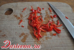 Перец нарезаем мелкими полукольцами. Измельчаем петрушку.