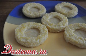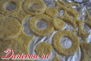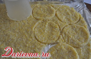 Когда полента остынет, большим стаканом вырезаем круги.