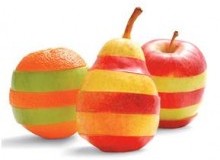 Порежьте фрукты на поперечные дольки и выложите так, как показано на рисунке. И зовите желающих попробовать полосатых красавцев!