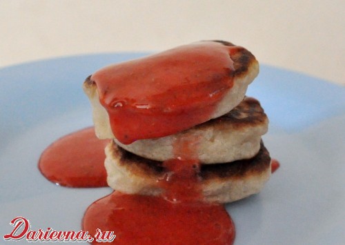 Не перемешивая, ложкой как бы отрезаете немного теста и выкладываете на смазанную маслом горячую сковородку. Жарим с двух сторон до красивого золотистого цвета.