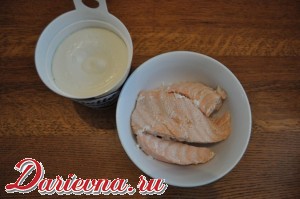 Крем-чиз взбиваем блендером с рыбным филе. Вместо отварного лосося можно взять копченую или соленую рыбу - вкус будет совсем иным.