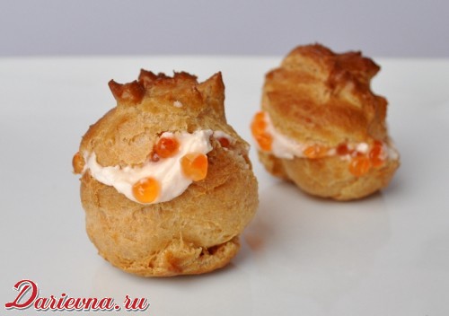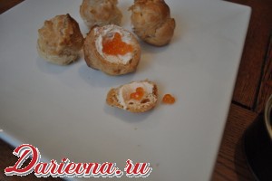 Это закуска, пожалуй, не для будничного ужина в кругу семьи. Она предполагает красиво накрытый стол, приятную компанию, легкую музыку, вкусное вино. Откусив маленький кусочек, вы словно нырнете в царство нежности, бархатистости, насыщенности. Икра будет взрываться яркими брызгами, лосось придаст крему выразительность, а сыр обеспечит легкость и ненавязчивость. Плохо в закуске лишь одно - она очень быстро исчезает со стола. В общем, как ни крути, а это просто идеальный вариант закуски на новогодний стол: она выглядит сногсшибательно, а на вкус прекрасна. И не думайте, что вы не успеете сегодня сделать эти самые профитроли с лососевым муссом - при наличии дома всех необходимых продуктов справитесь максимум за час. Самое трудоемкое (но отнюдь не сложное) - это приготовление профитролей, но с этим тоже не возникнет сложностей, поверьте мне и в свои силы. Если вы еще не до конца определились с меню на Новый год, если все еще думаете, какую закуску приготовить, смело делайте выбор в пользу закусочных профитролей - не прогадаете!