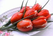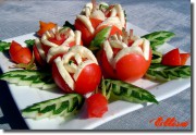 Если весна и лето не могут прийти к нам в гости, как в сказке "Двенадцать месяцев" на пару месяцев раньше, предлагаю устроить себе досрочный приход свежей весны и яркого лета. Согласитесь, едой можно раскрасить мир совершенно неожиданным образом! Так почему бы нам сегодня не выкрасить свое настроение в позитивный красный цвет? Тарелки, наполненные такой едой, волшебным образом будут поднимать настроение и создавать вам вашу личную весну и ваше персональное лето. Не верите? Попробуйте вырастить букет тюльпанов из помидоров - и вы почувствуете легкое дуновение мартовского ветерка. Карамелизированные черри в японском стиле заставят ощутить запах цветущих сакур. Фаршированные помидорчики-ягодки напомнят о корзинах с клубникой. Ну, а розы с сыром просто не смогут не рассказать о летнем отдыхе, романтике и любви
