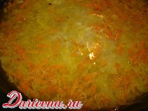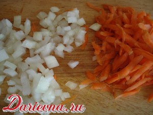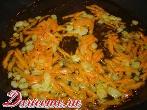 На растительном масле на небольшом огне пассируем лук и морковь до прозрачности лука.