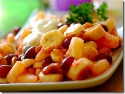 Этот рецепт от salatikin.com.ua, скорее, набросок к салату. Потому что, безусловно, в нем отлично будут смотреться и другие фрукты. Какие именно, решать вам: если хотите салат банановый с экзотическими фруктами, то возьмите карамболь, папайю, авокадо. Если же предпочитаете свои, местные фрукты, то сделайте банановый салат с яблоками, виноградом, грушей, персиком, клубникой. Вобщем эксперементируйте, пробуйте и обязательно делитесь с нами полученным результатом!