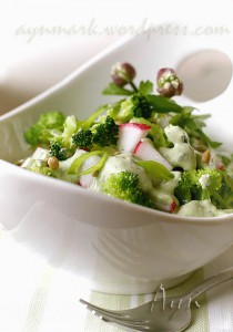 Брокколи содержит огромное количество витаминов и минеральных веществ, особенно калия, фолиевой кислоты, железа, бета-каротина и соединений серы. Брокколи - не просто овощ, это настоящая витаминно-минеральная бомба! Брокколи мобилизует нашу иммунную систему, предотвращает анемию, инфекции, болезни печени, опухоли. Кроме всего этого употребление брокколи еще и замедляет процесс старения. Так что сегодня готовим очень вкусный и очень полезный салат из брокколи и редиса по рецепту сайта aynmark.wordpress.com.