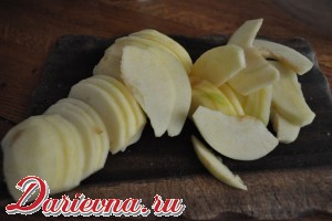 Яблоки очищаем, режем на тонкие дольки, обжариваем на растительном масле.