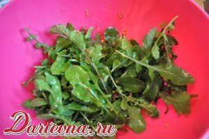 Рукколу моем, рвем на кусочки.