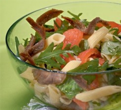 Тема салатов с холодными макаронными изделиями меня не отпускает: перепробовав все из предыдущей подборки, я решила, что пора искать новые варианты. На первом месте - салат с беконом, помидорами-черри и моцареллой: уверена, он не может быть невкусным. Номер два - кукуруза, горошек, сельдерей и тунец. Три - пармезан, руккола, базилик. Четыре - лаконичный лосось, лаконичная паста, все.