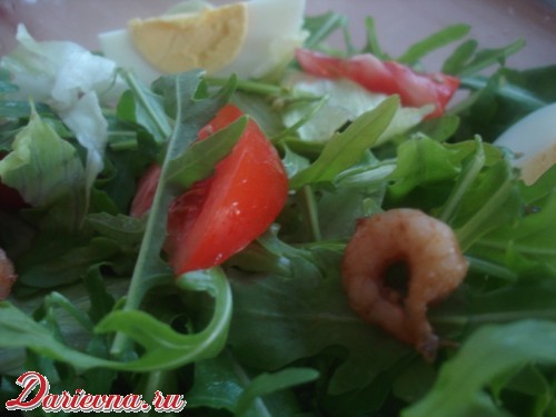 Салат и руколу моем и рвем руками на небольшие кусочки.