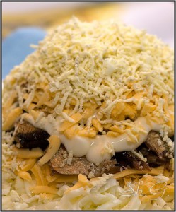 Посыпьте оставшимся сыром и желтками.